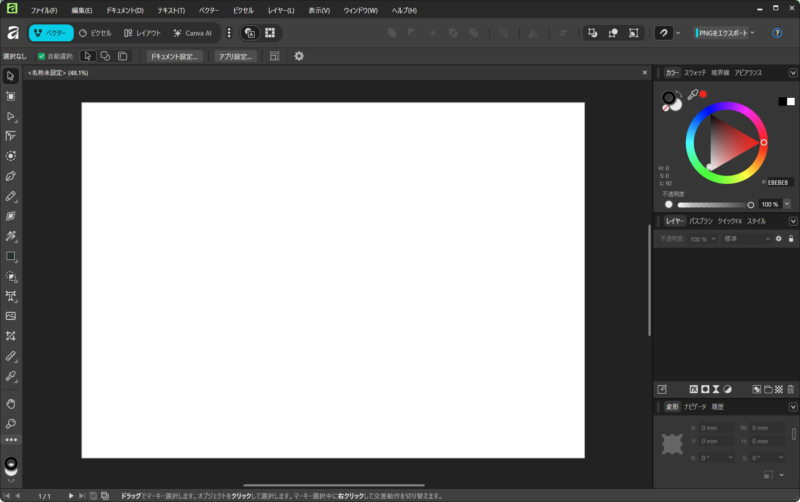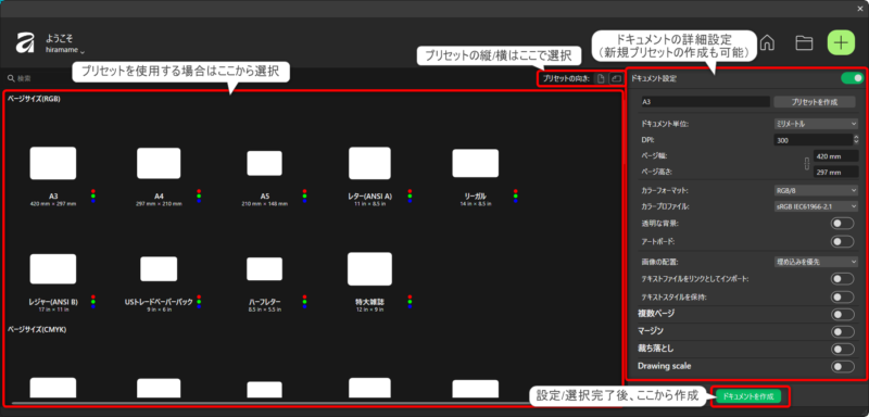 Affinity 3.0で新規ドキュメントを作成する際の手順を以下にまとめます。
