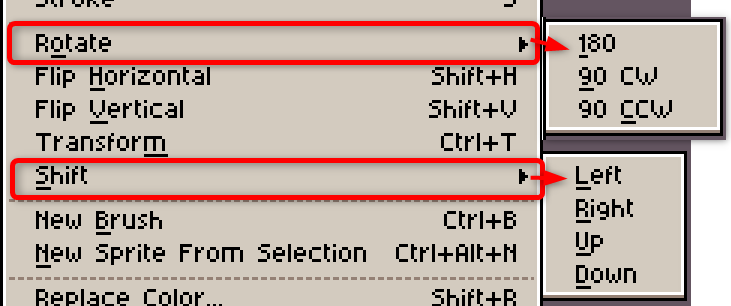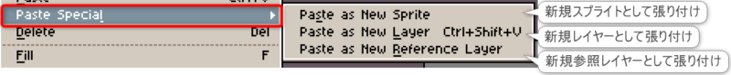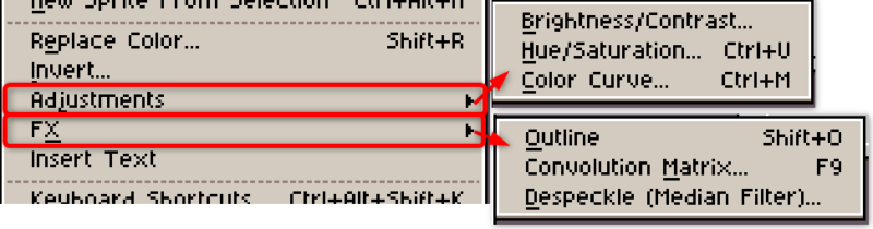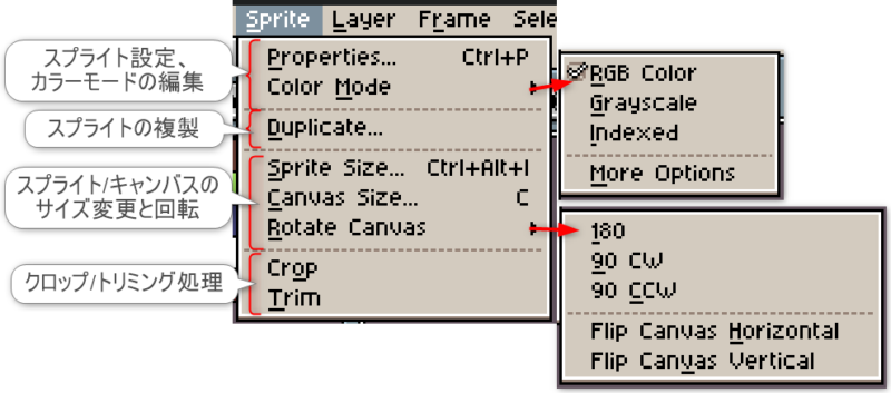 項目「Sprite」は、主にスプライトやキャンバスの設定やサイズ変更に関する機能にアクセスできます。