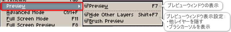 | Brush Preview | 描画前に、現在のブラシ形状がカーソル上にプレビュー |