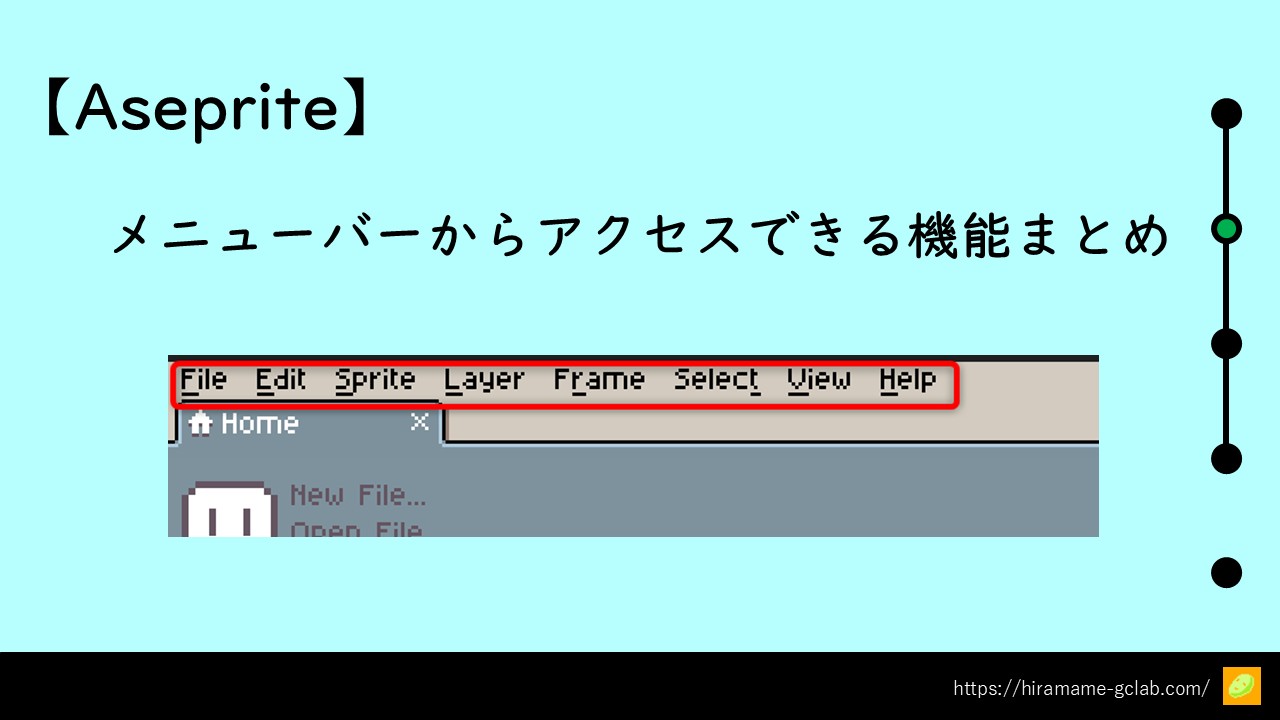 この記事では、Asepriteのメニューバーから使用できる各種機能についてまとめています。