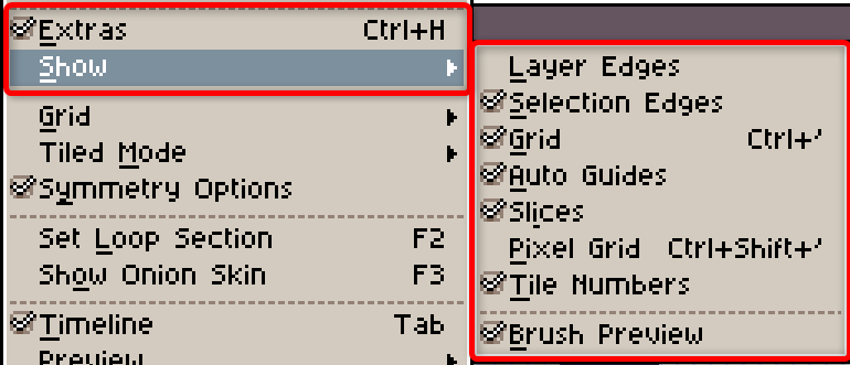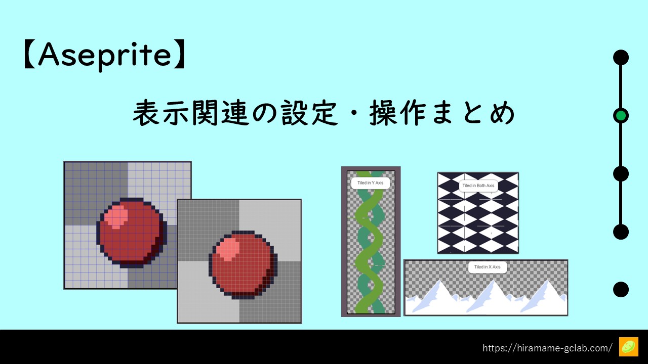 この記事では、Asepriteにおける各種表示関連の設定・操作方法についてまとめています。