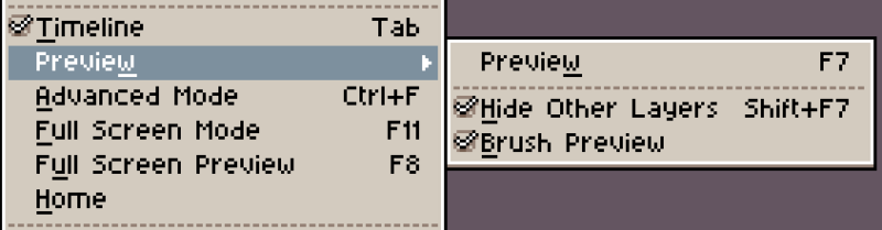 Asepriteにおいて表示関連の操作や設定変更を行う際は、基本的にメニューバーの「View」から網羅的にアクセスできます。