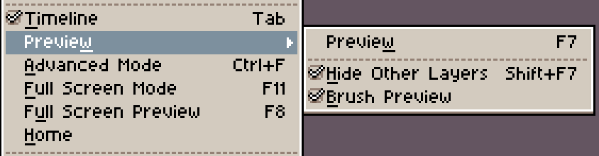 | Preview | プレビューウィンドウの表示と設定 設定で、表示レイヤーの制限やブラシの表示を切り替え可能 ![]() ![]() | ![]() ![]() |