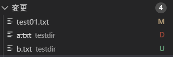 上記のような表示はソース管理タブから、変更あり(M:Modified)や 削除済み(D:Deleted)も確認できます。