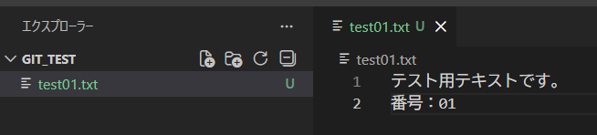 Gitリポジトリのあるフォルダでファイルの作成や編集を行うと、VSCodeでその状態を検知・確認することができます。