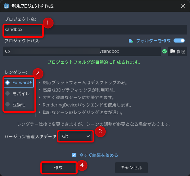 - Godotプロジェクトを新規作成する際の手順とオプションの選び方