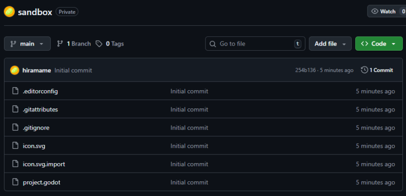 →同時に、.gitignore にて除外設定されている[.godot/]ディレクトリ以下の要素は含まれていないことも確認できます。