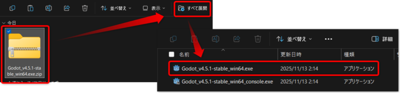 ダウンロードしたZipファイルを任意の場所に展開し、アプリケーションファイルを開きます。