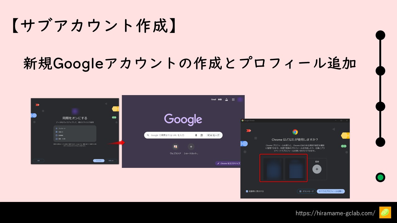 この記事では、「新規Googleアカウントを作成し、Chromeにプロフィールを追加するまで」の流れをまとめています。