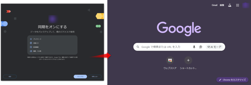 3. 追加したプロフィールとのGoogleアカウント紐付けと初期設定(同期・テーマ)