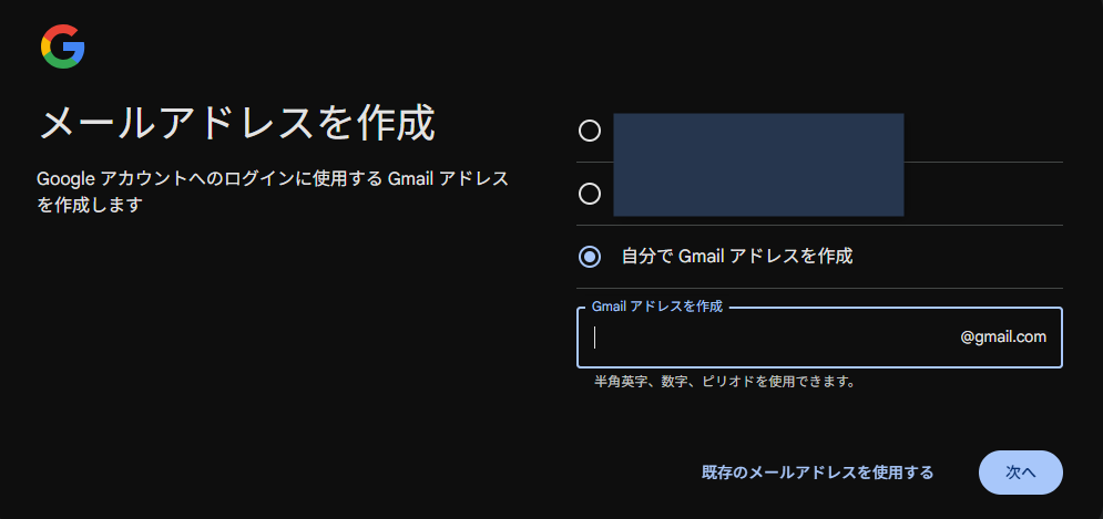 ③ メールアドレスの設定(他ユーザーと重複している場合は、末尾に数字などを付与します)