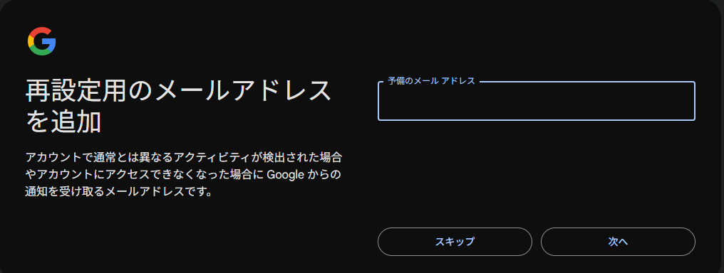 ⑦ 再設定用メールアドレスの追加(不要な場合はスキップ可能)