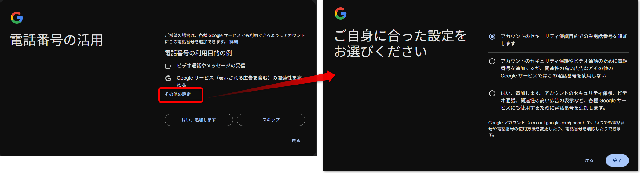 ⑨ 電話番号の活用設定:「その他の設定」から詳細を選択できます